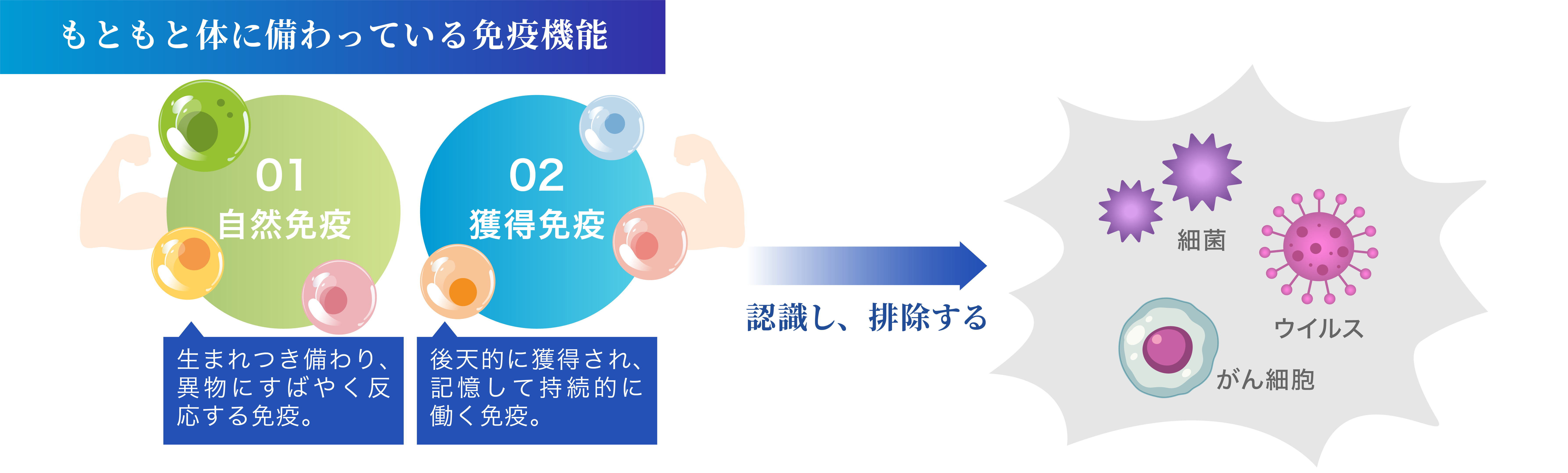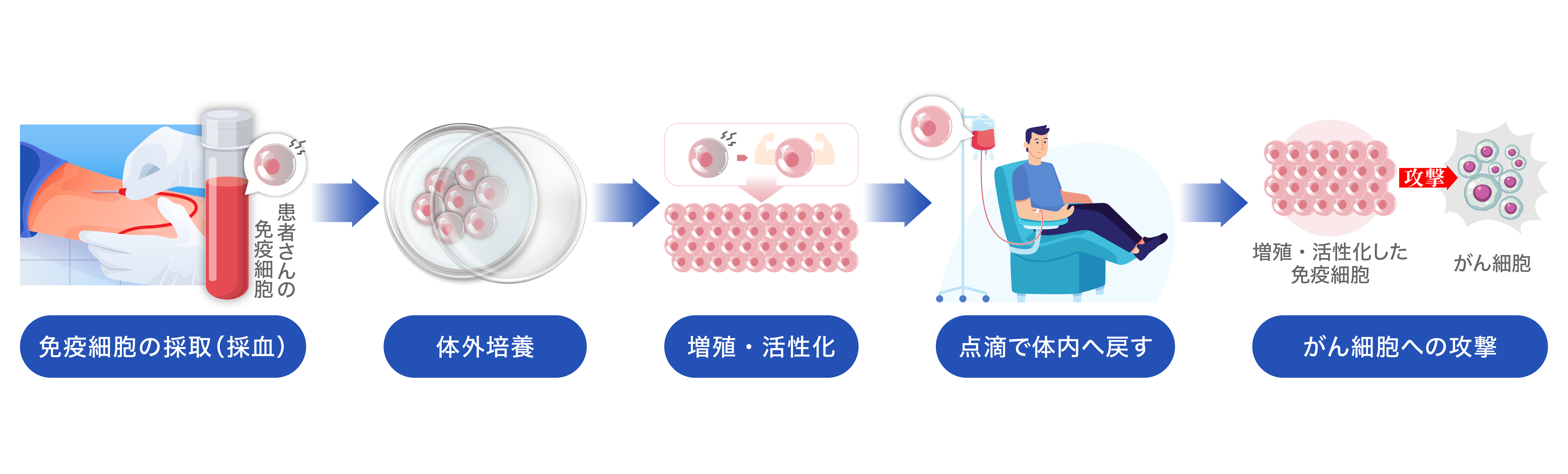 免疫細胞治療は、低下した免疫機能を立て直し、体をがんと正面から闘える状態へ戻すことを目的とした、がん免疫療法です。