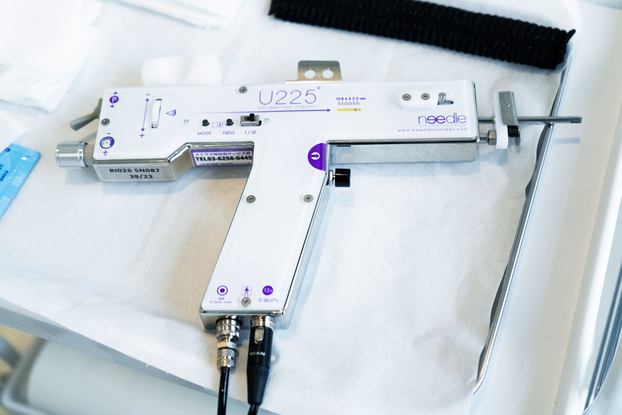 肌のキメ、毛穴、小じわなどに効果的で、針の深さを調整することで目周りへの注入も可能です。